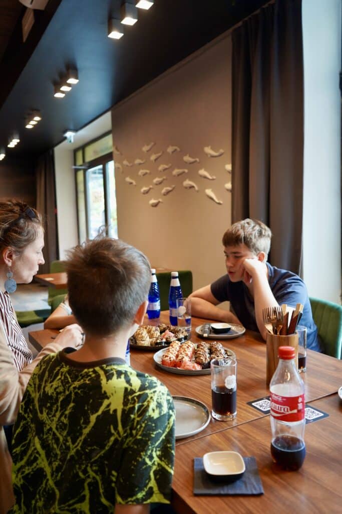 Väsinult, aga õnnelikult suundusime energiavarusid taastama Sushi Gurusse. Õnneks ei pidanud pärast sportlikku pingutust kaua ootama ja Fabiani lemmik – küpsetatud sushi maitses imeliselt. Magusa täienduse andis jäätisering, sest mis unistuste päev see oleks, kui jäätis vahele jääks!