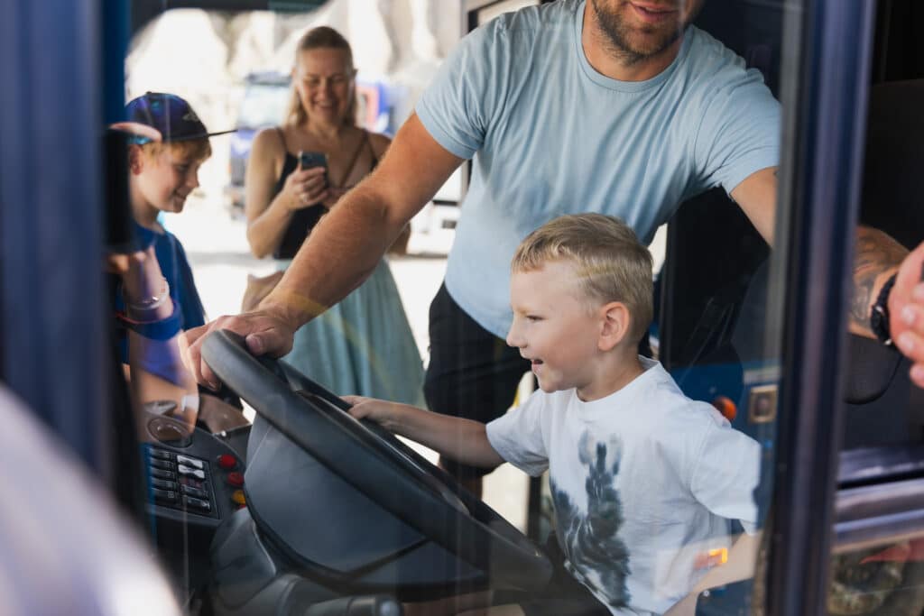 Kõige erilisemad hetked olid need, kui Karl sai ise suure liinibussi rooli taha istuda. Tema nägu kiirgas rõõmust, kui ta juhatas liinibussi ja manööverdas erinevate tõstukitega. Kraanat juhtides tundus poiss olevat väga elevil – iga liigutus oli täis põnevust, samal ajal kui vanem vend jagas vennaga seda erilist hetke täie südamega.
