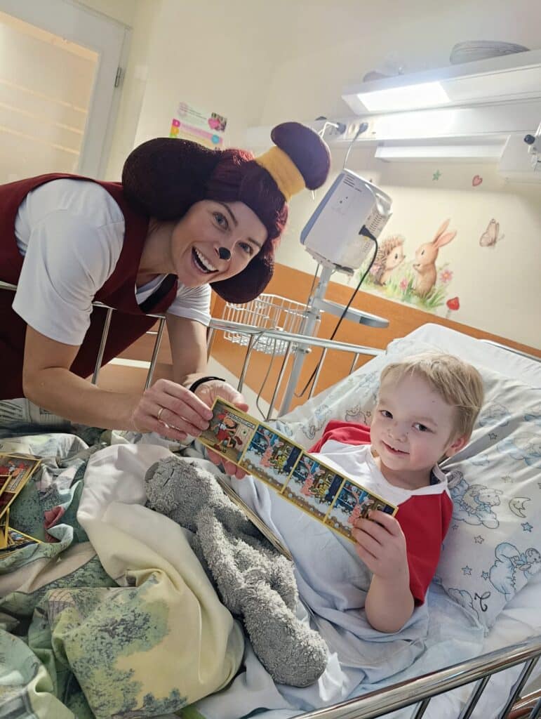 Ühel päeval käis külas vallatu ja südamlik Stitch. Seekord oli lapsi haiglas erakordselt palju, nii suurt hulka pole Stitch seal varem näinudki. Just seetõttu sai Stitch endale ka rohkelt uusi sõpru. Palatites juttu jagus, lobiseti maast ja ilmast ning mängiti lõbusat Dobble’i-laadset mängu, millest võtsid rõõmuga osa ka emmed-issid. Ühine mängimine tõi palatitesse mõnusa sagina ja palju häid emotsioone. Kõik soovijad said endale Stitchi-teemalise vesitattoo ning Stitch voolis lastele ka vahvaid õhupallifiguure, mis pakkusid rõõmu nii väikestele kui ka veidi suurematele sõpradele. Lahkudes jättis Stitch lastele meeneks ühe põneva mõistatamislehe, kus olid peal erinevad tegevused. Seda said lapsed siis hiljem värvida ja nuputada, selline mõnus tegevus ka pärast külaskäiku. Lahkudes soovis Stitch kõikidele patsientidele kiiret paranemist, tugevat tervist ja vaprat meelt.