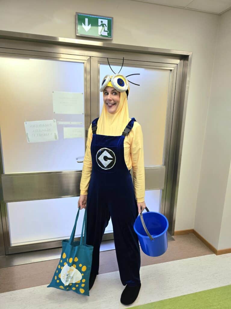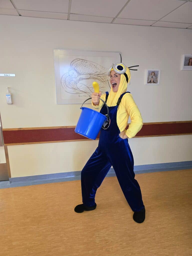 Tallinna Lastehaiglat külastas vallatu ja lõbus Minion. Tal oli kaasas ka oma lemmik banaanad, mida ta uhkusega kõikidele kõva häälega näitas ja tutvustas. See tekitas palju elevust ja nalja nii laste kui ka haiglatöötajate seas. Rõõmukilkeid jagus igasse koridori. Koos lastega ja mõne emmede-issiga mängiti lõbusat Dobble’I laadset mängu, kus sai proovile panna nii kiiruse kui tähelepanelikkuse. Mõne lapsega tehti ka vahvat banaani täpsusviset, mis tekitas veidi ka hasarti. Kõik soovijad said endale armsad loomakestega vesitattood. Eriti tore oli veel see, et suuremad preilid, kes juba 18-aastaseks hakkasid saama, valisid isegi endale ühe! Minionil olid ka mõned Minioni-teemalised patsikummid kaasas, mida ta lastele kinkis. Lastehaigla külastus oli täis lusti ja nalja. Minion lahkus haiglast suure rõõmutundega, et tal oli võimalus veidikene laste hommikut lõbusamaks muuta ja halli hargipäeva neile kollast rõõmuenergiat tuua.