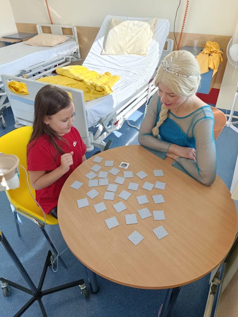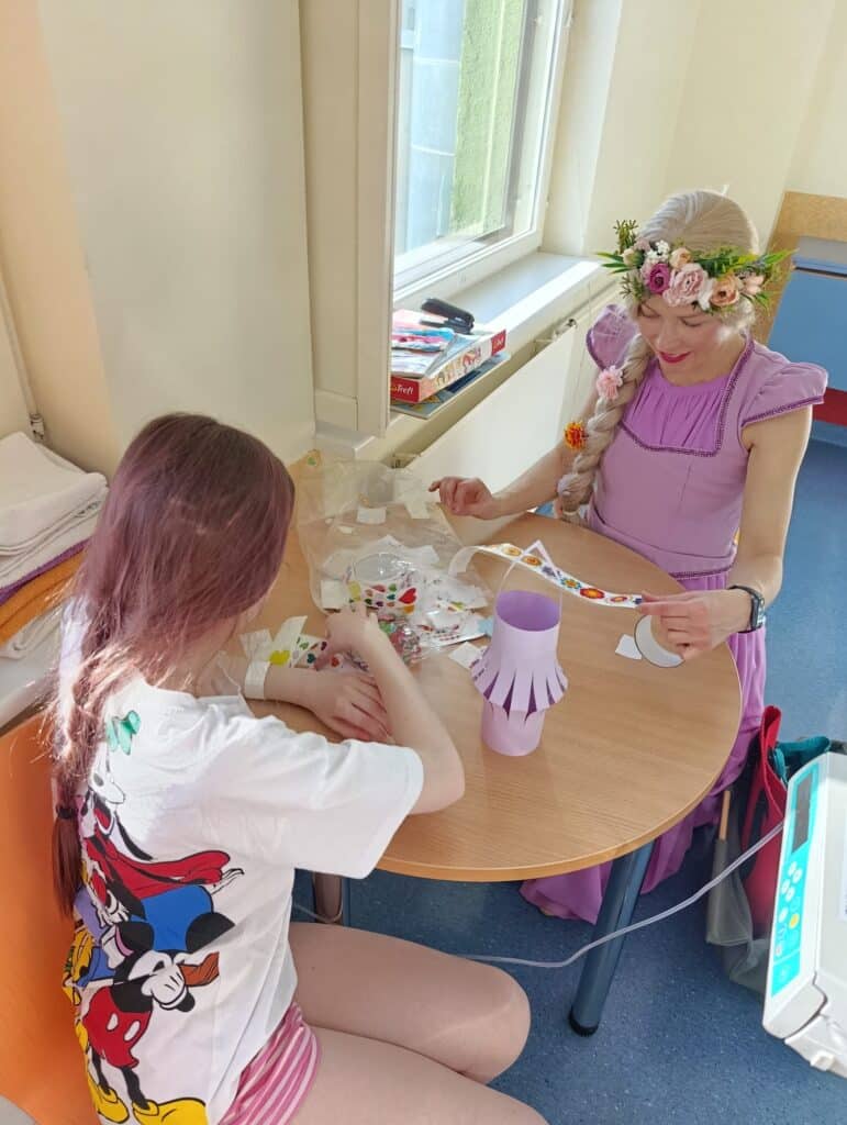 Rapuntsel oli valmistanud ette mitmed tegevused, kus igaüks leidis oma lemmiku. “Kas me meisterdame? Kas paneme muinasjutu pusle kokku? Kas proovime lukkude avamise mängu?” Iga lause järel oli ühe tüdruku silmades tohutult suur rõõm, veelgi enam – elevus ja seda ma luban on tunda ka praegu kui seda kirjutan teile. Võib olla lausa tunned, kui neid mõtteid ei loed? Tegevustele lisaks jagab Rapuntsel ühele lapsele kingituse – võtmehoidja, mille saab ta riputada, kuhu iganes soovib. Laps võtab selle tugevalt sõrmede vahele ja kallistab Rapuntselit. Üks ema jagab: “Me oleme kuulnud, et haiglas käivad erinevad tegelased, me teame, kes te olete, aitäh Teile!”