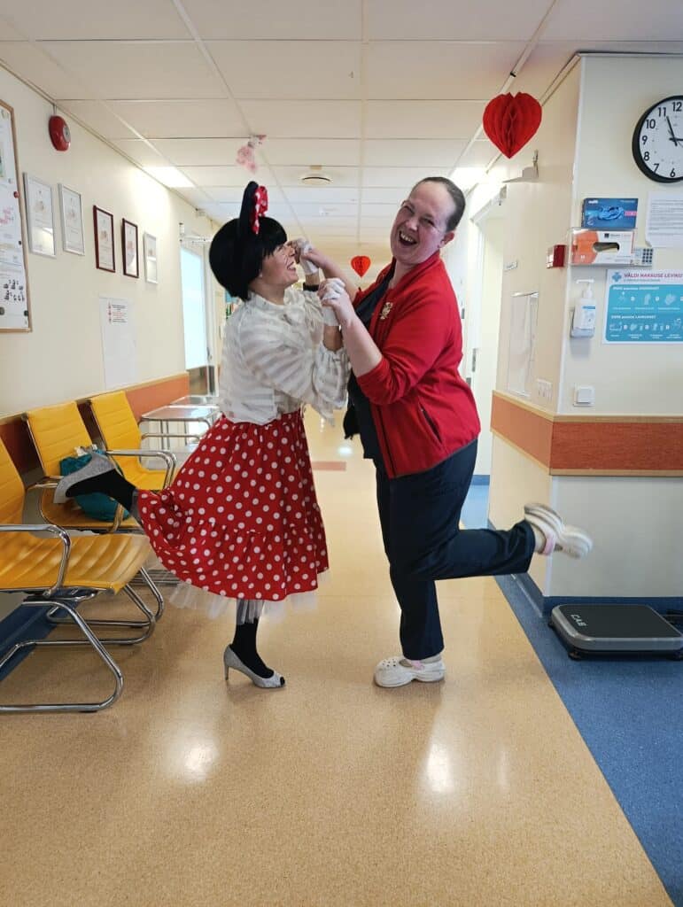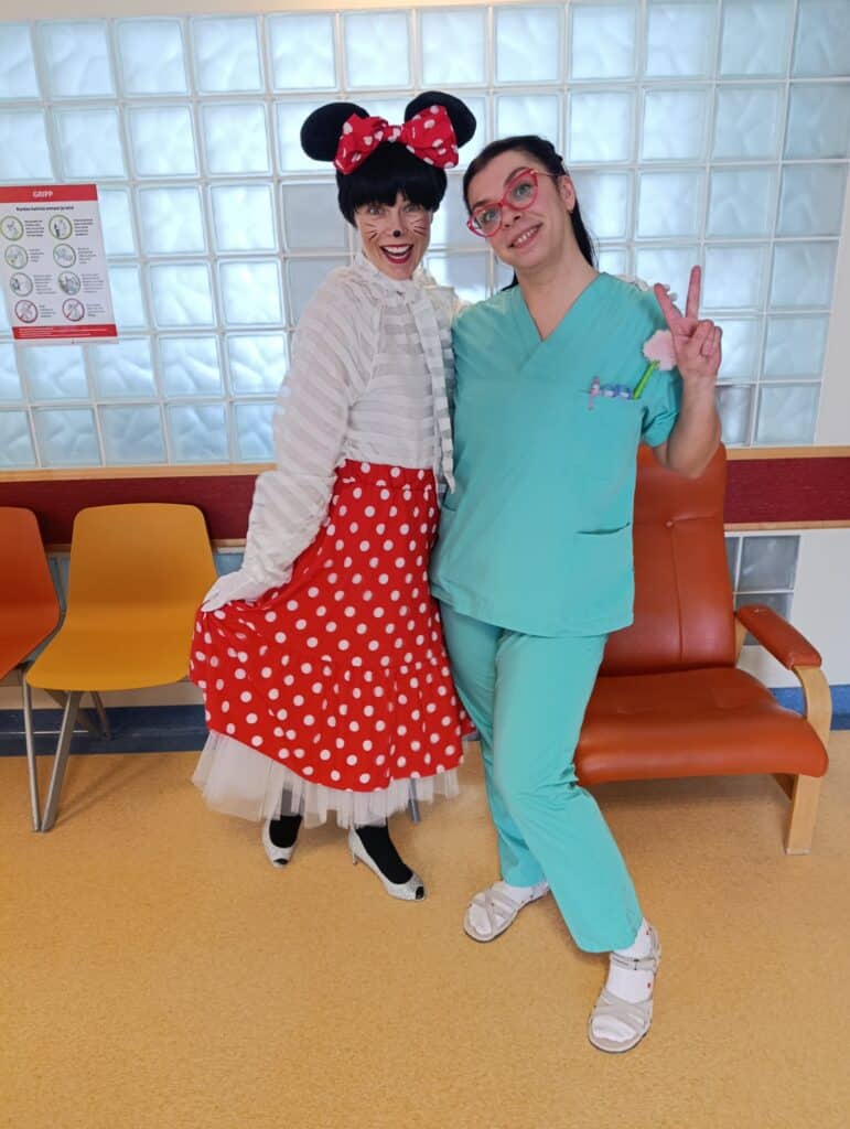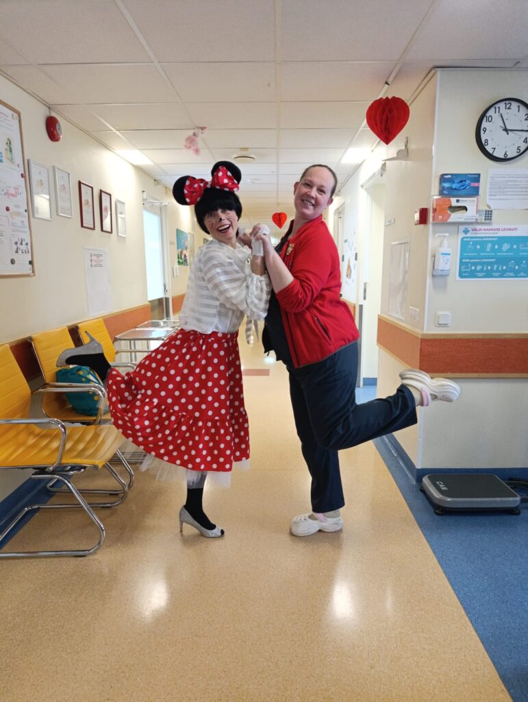 Taas oli Tallinna Lastehaigla lastel külas Minni Hiir. Pisike, kuid väga armas ja nunnu tegelane, kes oma positiivsuse ja säraga väikestele patsientidele rõõmu tõi. Minni külastuse üheks oluliseks osaks oli lustakate lugude jagamine sellest, kui keeruline võib ühel hiiretüdrukul olla garderoobis valikuid teha ja just need õiged kingad leida. Just nende viimastega saigi palju nalja – üsna kiiresti sai Minni aru, et tal on jalas ühe numbri võrra suuremad kingad. Nii pakkus ta haigla erinevatel korrustel ringi liikudes kõigile oma klõbisevate kingakontsadega rohkelt lõbusaid hetki.